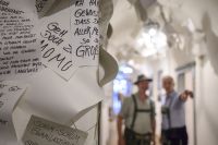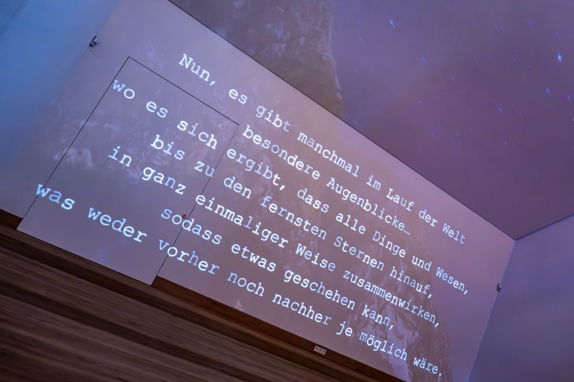 Michael Ende wurde in Garmisch-Partenkirchen geboren. Sein Vater Edgar Ende (1901–1965) war Maler und zählte ebenso wie die Mutter zu dem Kreis um den Theologen Johannes Müller, der Schloss Elmau erbaut hat. Der kleine Ende wurde in einem hochvergeistigten familiären Umfeld schon früh gefördert, schrieb Gedichte und wollte zunächst Schauspieler werden, bevor er sich für die Schriftstellerei entschied. Die Ausstellung zeigt einen wenig bekannten, spannenden Michael Ende, der als Denker ernst, rational und klar, gesellschaftskritisch und philosophisch-politisch sein konnte, und der zugleich ein tieffühlender Poet war. In der bildhauerischen Installation für die Ausstellung fügen sich seine Zitate und Gedanken wie Papiere aus einem Zettelkasten zusammen zu langen Zitatfahnen, die in die Höhe steigen. Auf der Ebene der Exponate tragen u.a. Bilder von Edgar Ende, Fotografien aus Kindheit und Leben, Zeichnungen aus „Momo“ und „Die Unendliche Geschichte“, Tondokumente aus Interviews und Lesungen oder ein Bühnenbild des Düsseldorfer Marionetten-Theaters zu einem facettenreichen Bild dieses Ausnahme-Schriftstellers bei.
